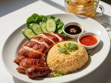 Experience the authentic flavors we've all been longing for! Savor Hainanese chicken rice paired with perfectly roasted chicken and rich, savory chicken soup. Indulge in a peak experience of chicken bliss!