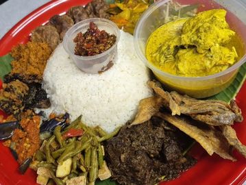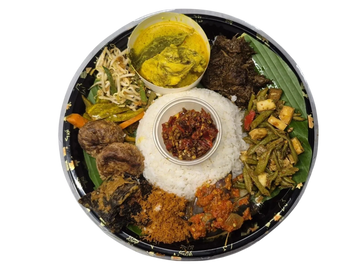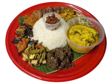 Nasi Ambeng isn't just a meal; it's a shared feast for the soul. Imagine a vibrant, fragrant platter of coconut rice, crowned with spiced beef rendang, crispy fried lungs(paru), savory serunding, a vibrant, spicy sambal goreng of crunchy long beans and fiery sambal—all meant to be eaten by hand with friends or family from one communal tray. It’s a delicious celebration of togetherness, heritage, and joyful abundance. Taste the tradition, and share the connection.